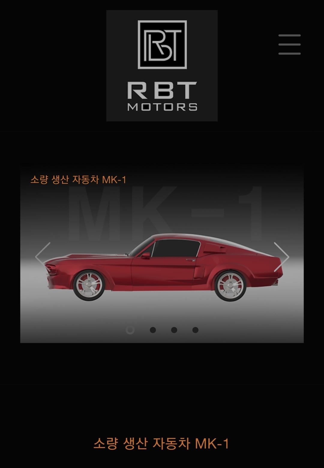 바로 이 RBT모터스(알비티모터스), 소량생산자동차 인증을 받은 업체라고 한다. 최근 뉴스를 보면벌써 주문을 받고 생산이 시작된 것 같은데, 공식 사이트에는 제대로된 실물 자동차 사진이 한장이없다...