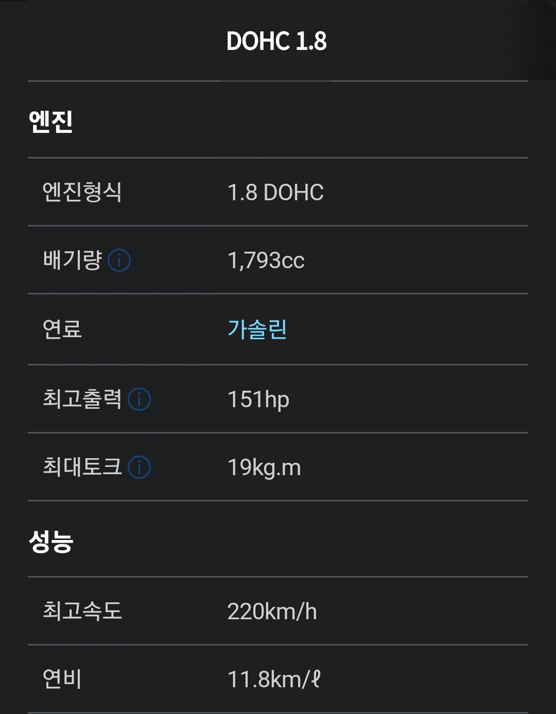아직도 기억나는게 스펙에 최고속력이 200키로가 넘는 차는 국산차중 이차가 처음이었던 것 같았다.