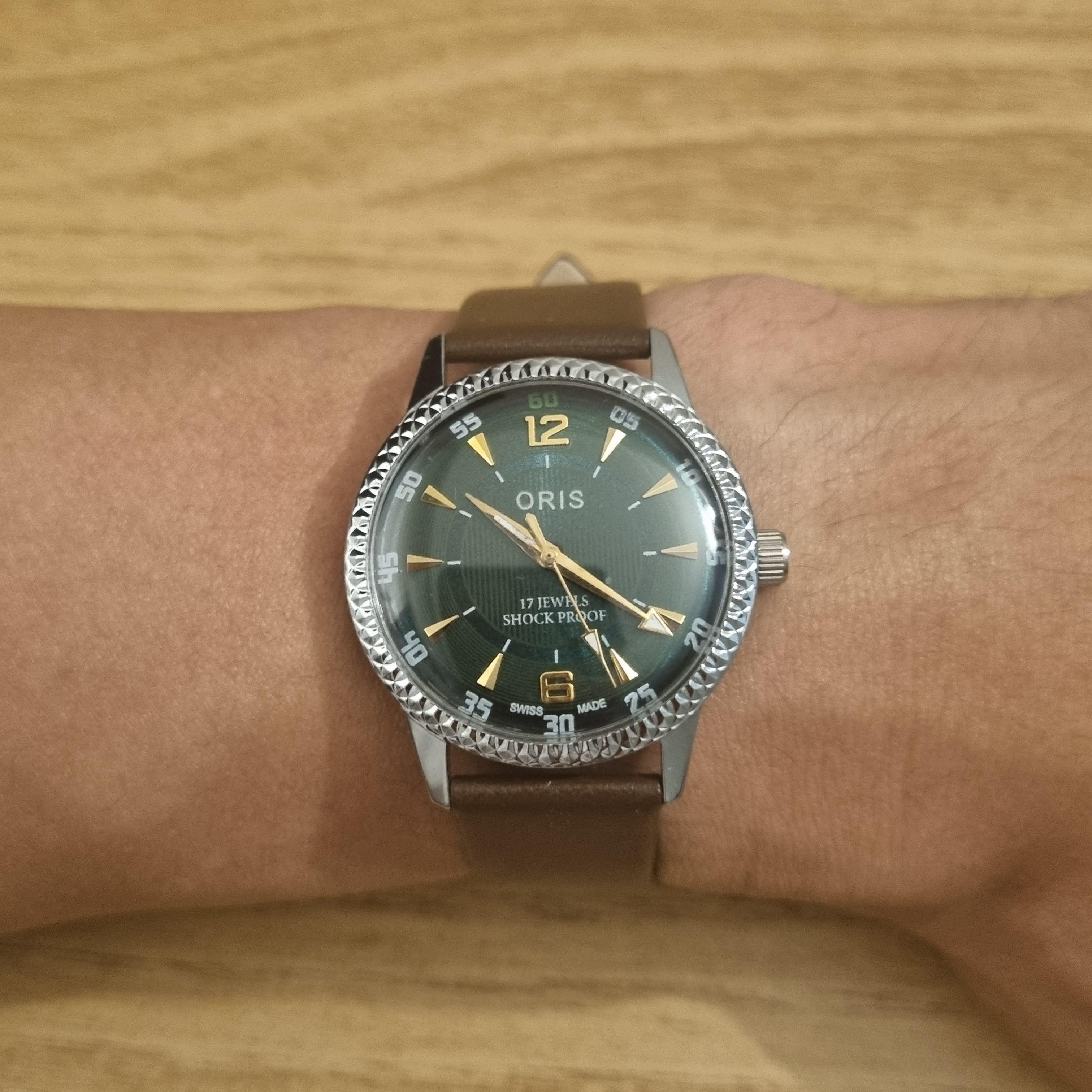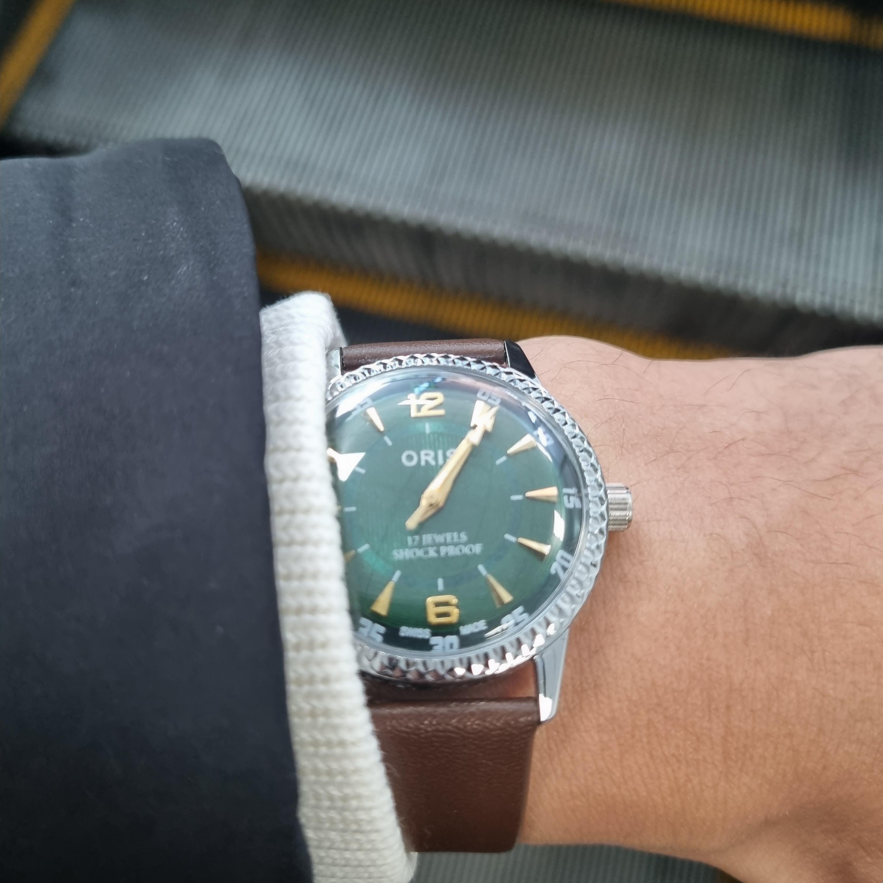 은근히 초록다이얼에 갈색 시계줄이 나쁘지 않는 조합이다.