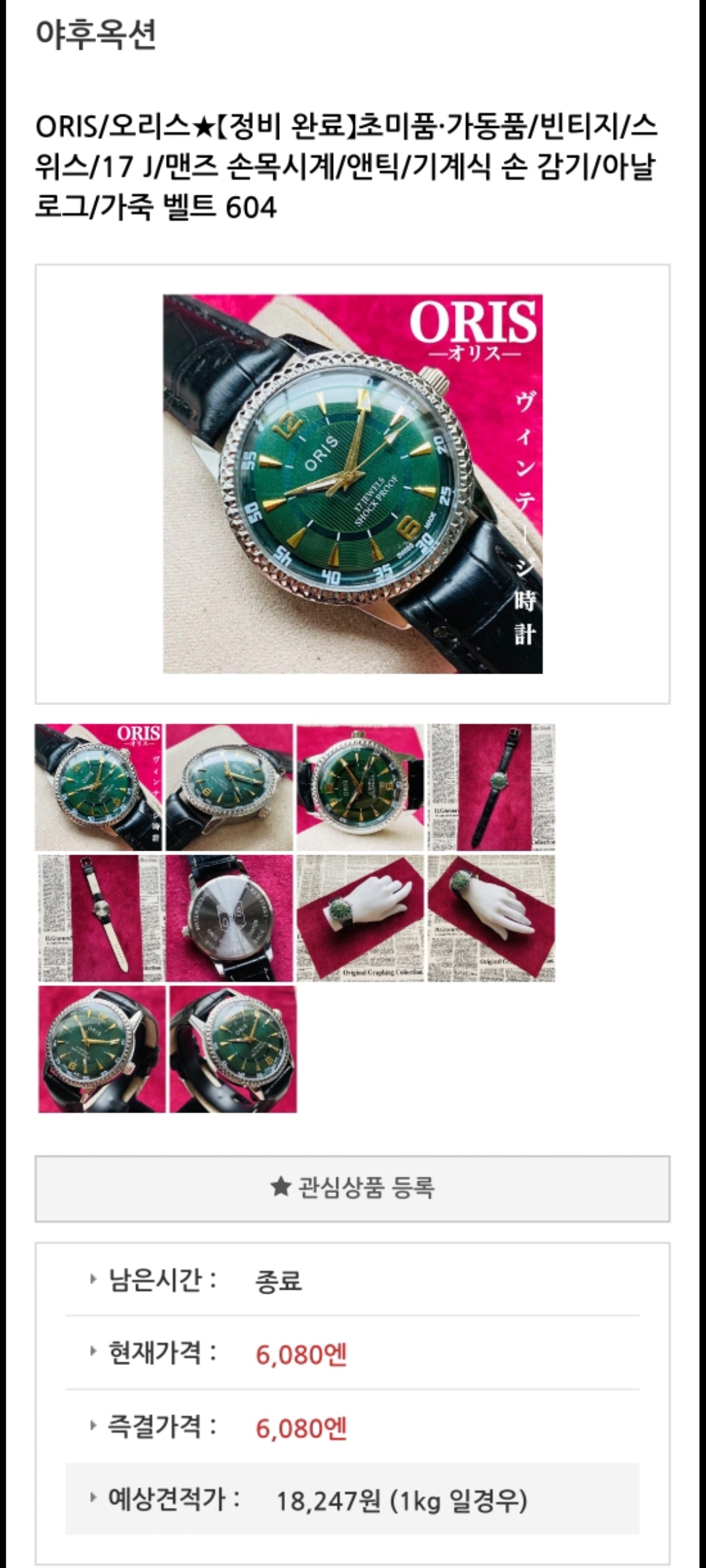 여튼 내가 일본옥션을 한번도 안해봐서 그런지 익숙지 못해서 킹다이버는 찾지 못했다. 하지만 개꿀템을 찾았는데 바로 오리스 빈티지 모델이다.