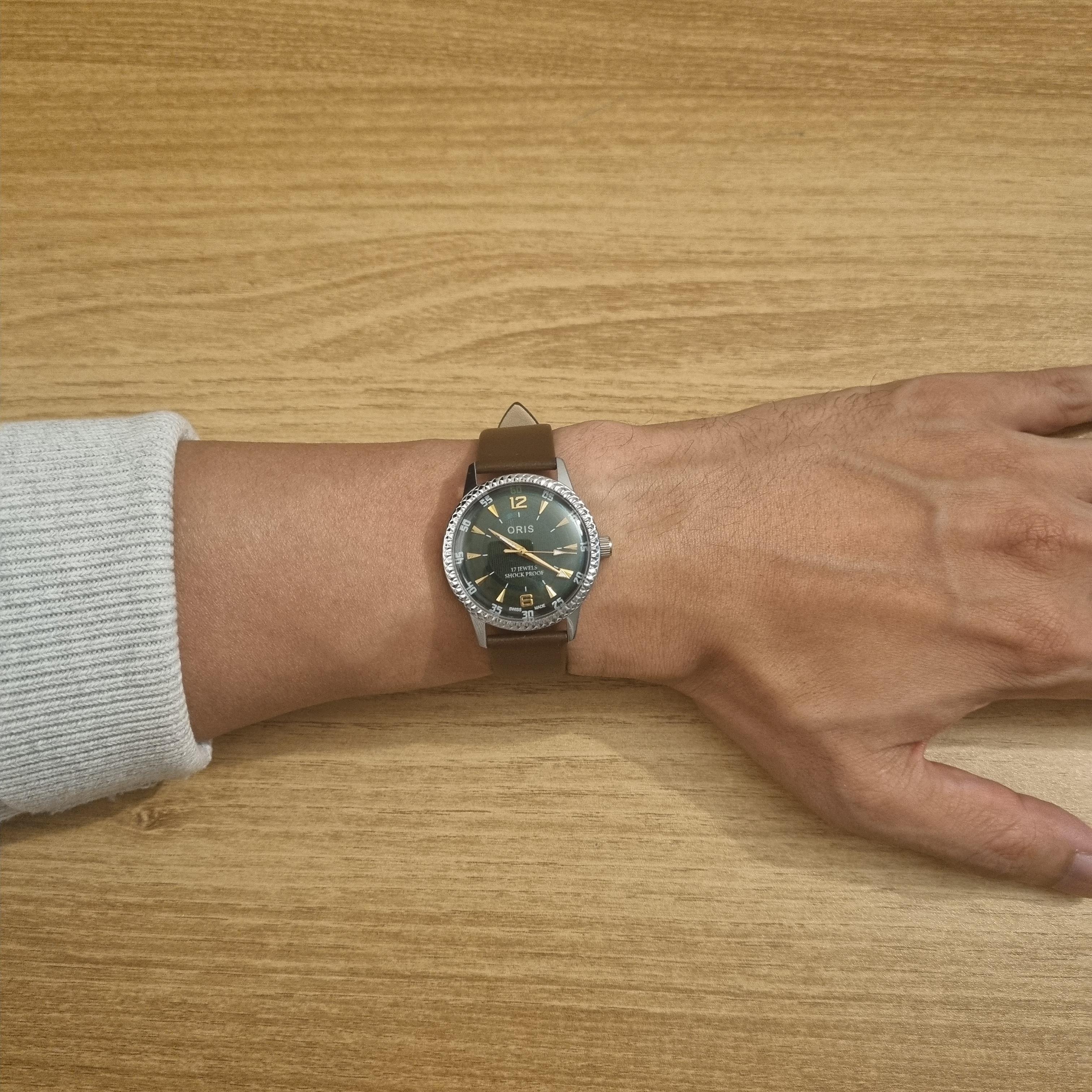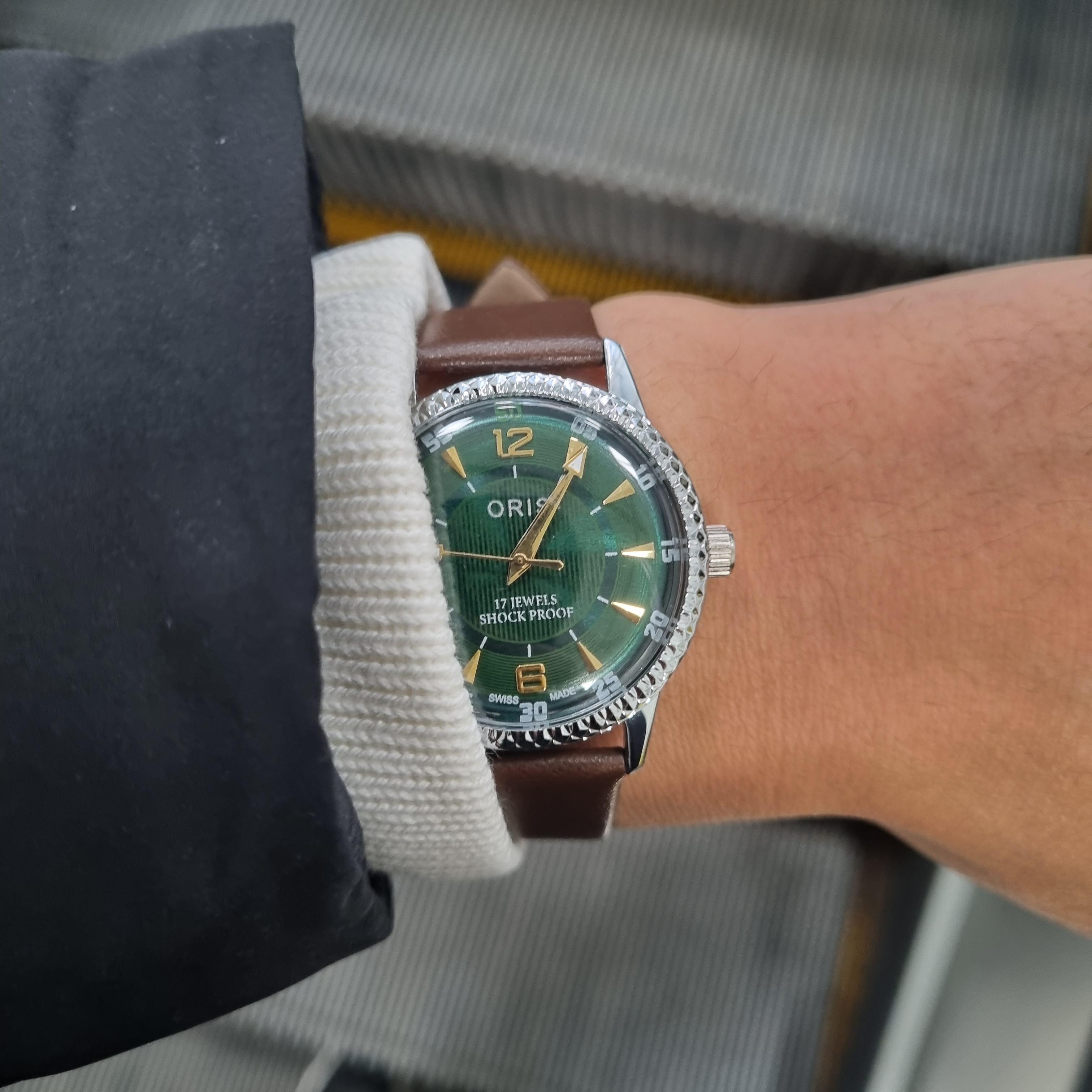 은근히 초록다이얼에 갈색 시계줄이 나쁘지 않는 조합이다.