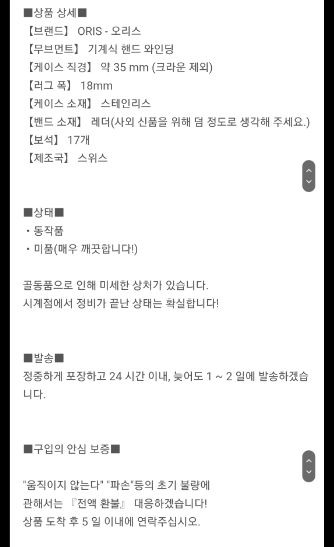 오리스는 오리엔트랑은 비교가 불가능한 스위스의 헤리티지 충만한 명품 브랜드인데 단돈 6만원이 안됐다. 아무리 상태가 안좋아도 말이 안되는 가격이라고 생각했는데 사진을 보니 상태도 좋았다!!