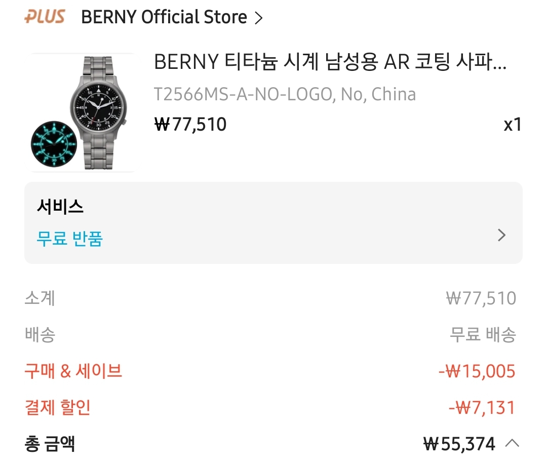 알리 시계, 5만원대 버니(BERNY) 티타늄 메카쿼츠 사파이어글래스 시계