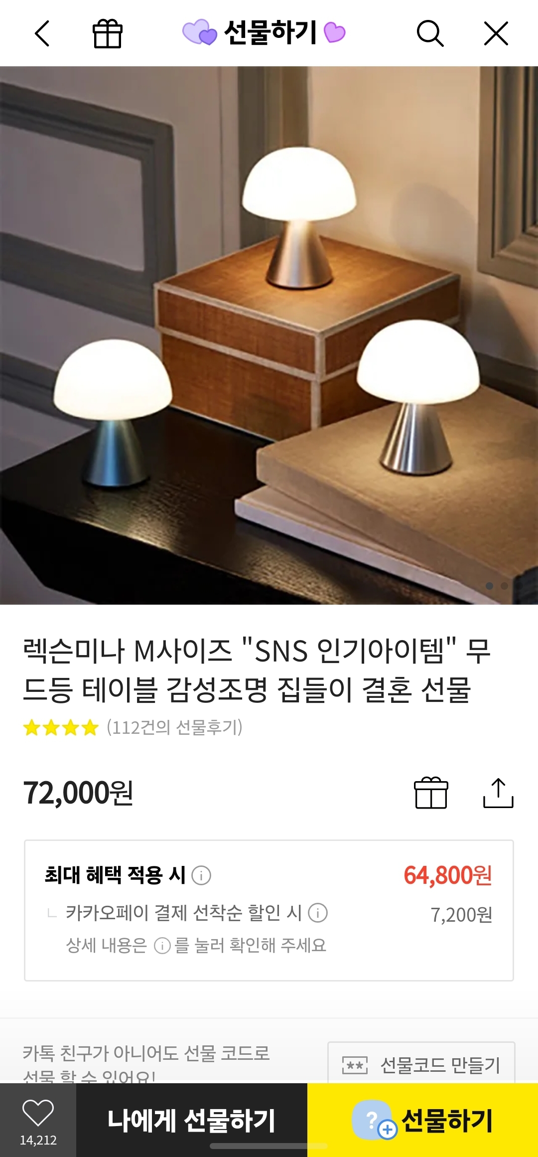 가끔 카카오톡 선물하기에서 상단노출이 많이 돼서 보게된 렉슨미나 무드등.