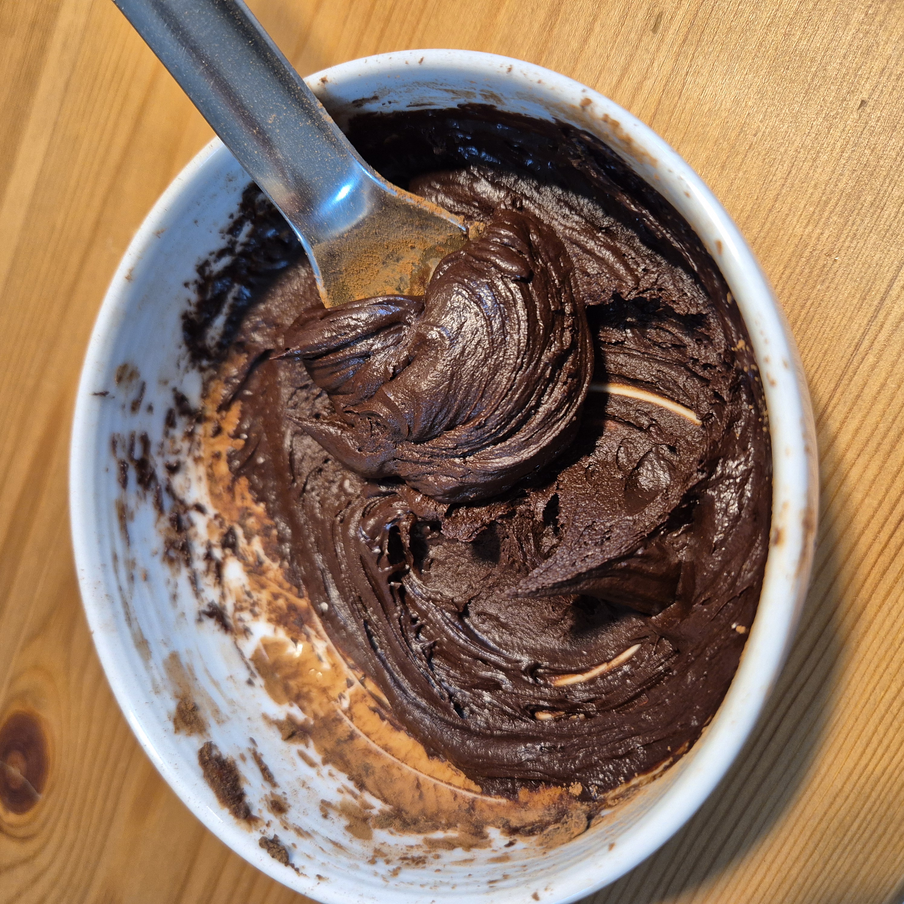 카카오파우더를 일정부분 넣고, 알룰로즈를 조금씩 추가하며 적절하게 섞이도록 비율을 조정한다.