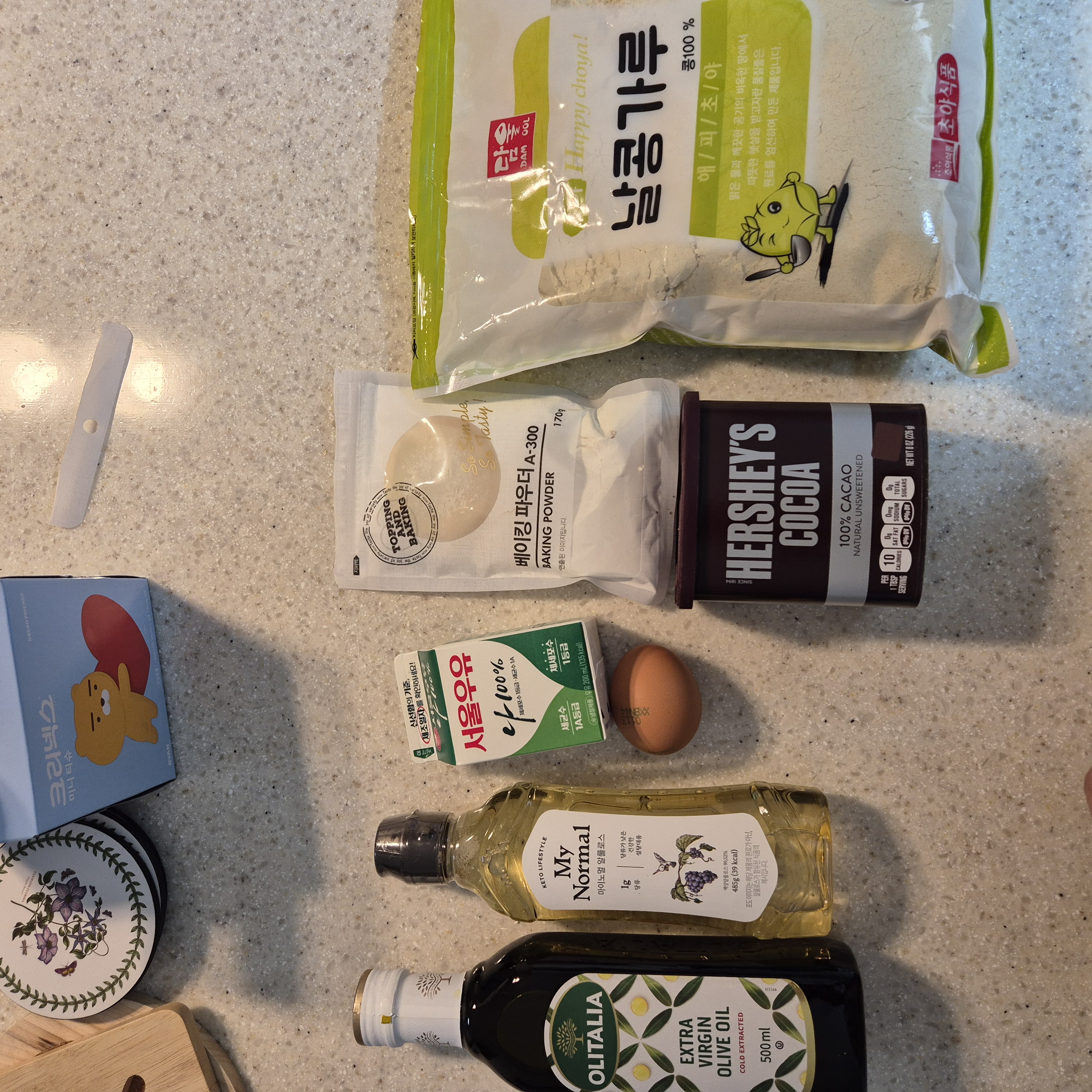 꽤 많아보이지만 대부분 집에 있는 것들이라 날콩가루와 카카오가루 정도만 구비하면 베이킹이 가능하다.